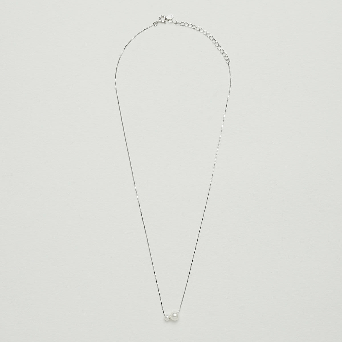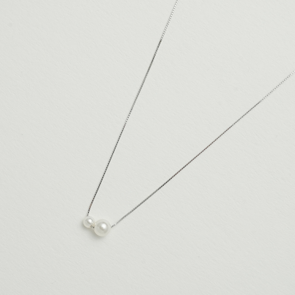この925シルバーダブルパールネックレスは、シンプルでありながら優雅なデザインで、美しさと繊細さを際立たせます。925純銀のチェーンは、細かい輝きと高い品質を誇り、全体のエレガントさを引き立てます。ペンダントには大小2つのパールがあしらわれ、まるで寄り添う星のように、柔らかな光沢を放ち、華やかさを演出します。